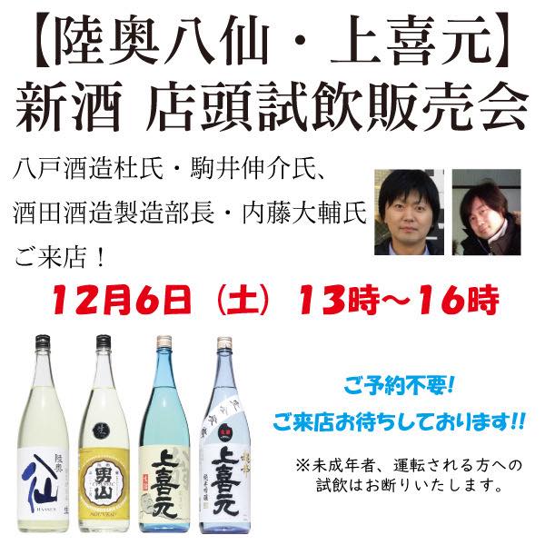【12/6】「上喜元」新酒試飲販売会が、江古田「酒の秋山」で実施