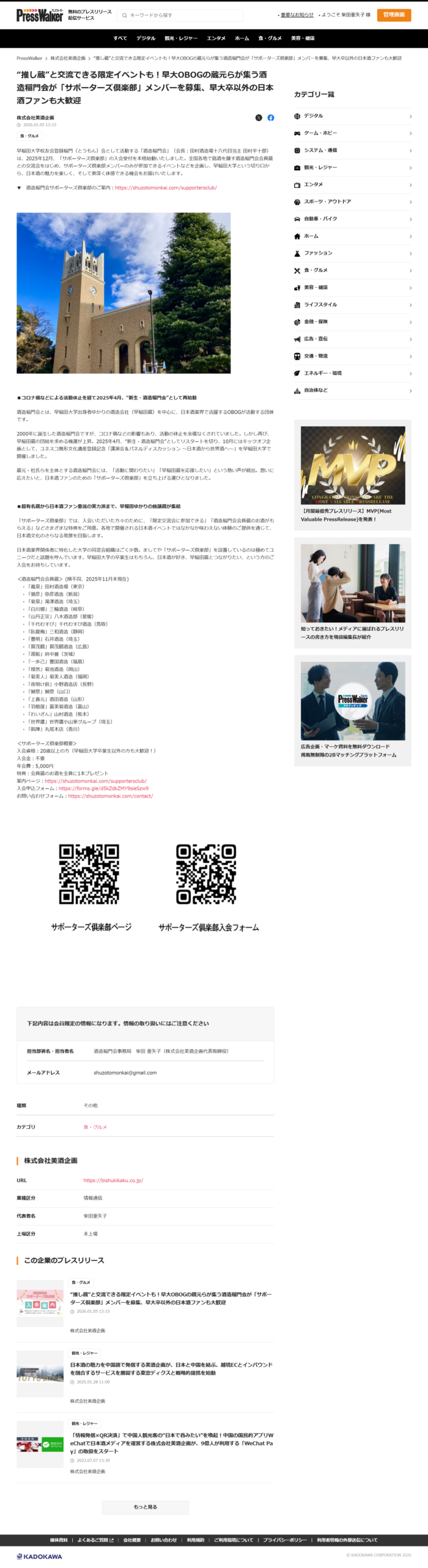残念ながら、PressWalkerは2026年2月25日(水)をもってサービス終了となってしまうのですが、早稲田OBOGを含む日本酒好きな皆さんに、一人でも多くサポーターズ俱楽部のことを知ってもらえれば嬉しいです♪