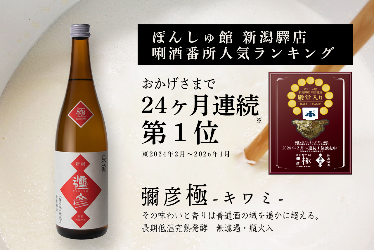 「彌彦 極 -キワミ-」が、新潟駅ぽんしゅ館での人気第1位連続記録を24か月に更新